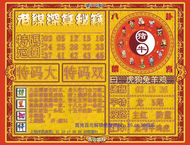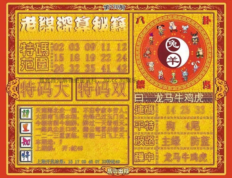 122期:密门仙机/心水特码信/黄大仙天书/波色生肖诗/生肖歇后语